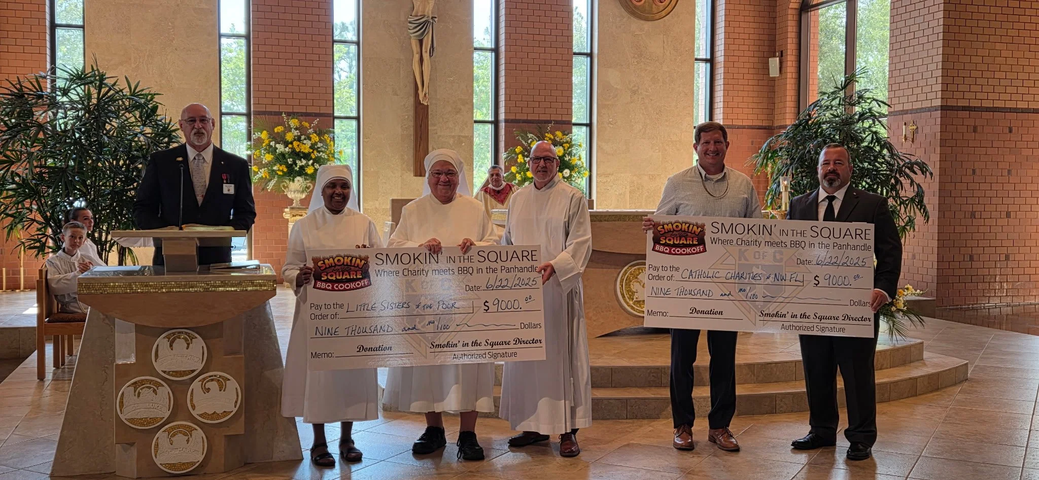 WOW WOW WOW!!! Thank you so much for everyone’s support of this year’s Smokin’ in the Square fundraising events!! This year has surpassed all of our expectations because of the generous continued support of our wonderful sponsors AND also because of all of you!!! Because of your incredible support, this year we are able to donate $18,000 to our two charities!! $9,000 each to Catholic Charities of NW Florida Food Bank and the Little Sisters of the Poor! Congratulations to all!